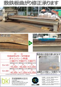 敷鉄板曲がり修正:期間限定キャンペーン(6月~9月)のお知らせ